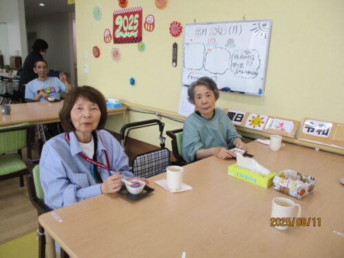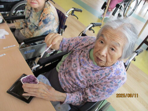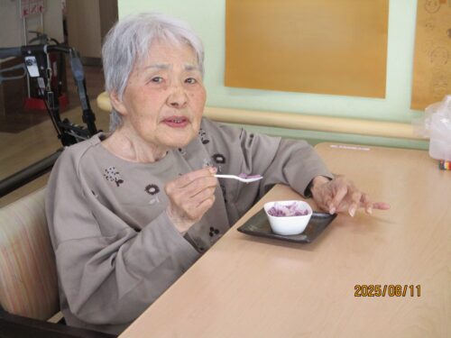ブルーベリーアイスをバナナの上に乗せて召し上がって頂きました!