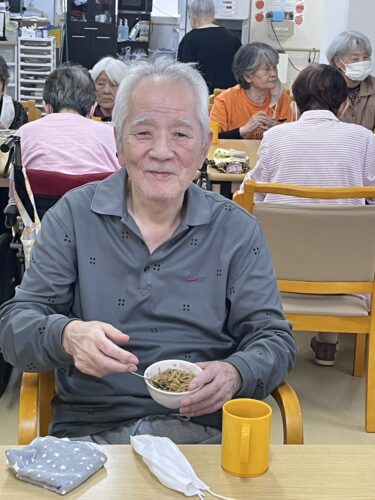 機能訓練指導員の畠さんと一緒にリハビリをされています。