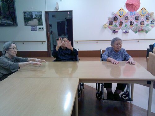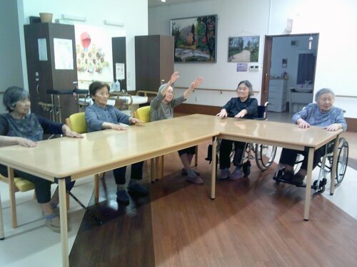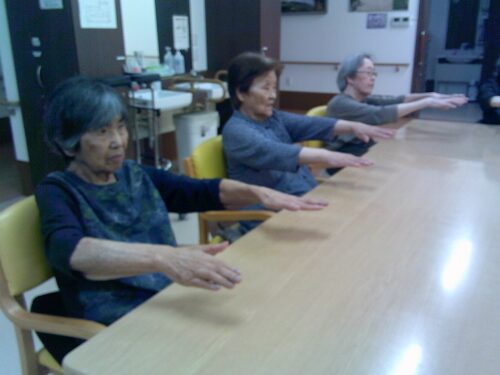 さわやかグループホーム むろらん 午後体操♪ 2025-08-15 2025-08-12 いつもお世話になっております。今回は違った体操をしてみました~♪ みなさん、腕を上げたり伸ばしたり!楽しくがんばりました~♪