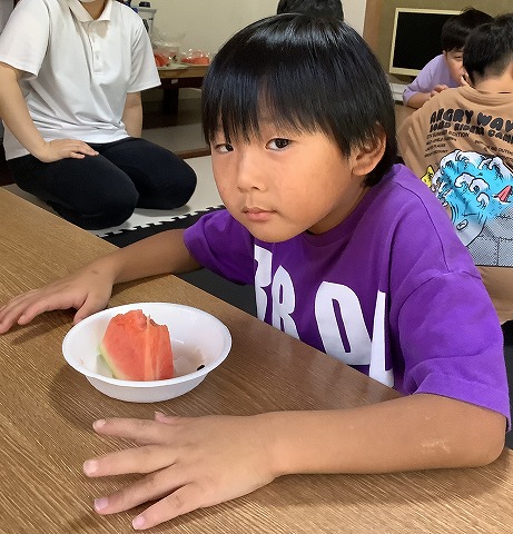 自分たちで割ったスイカ、美味しかった様です☺️🌟