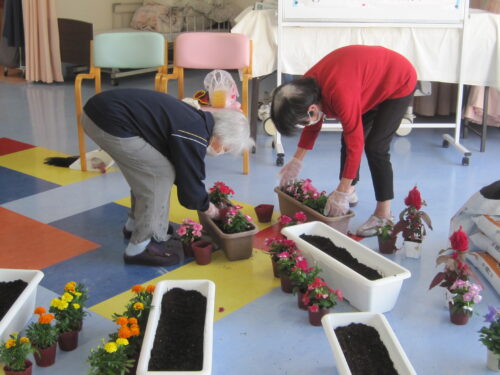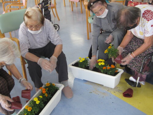 こんにちは✨さわやかシーサイド鳥羽です🤞入居者様と一緒に花壇を造りました🌺