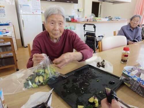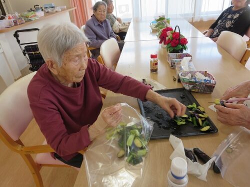 おやつレクで胡瓜と茄子の浅漬け作りに挑戦です(^^♪やったー!