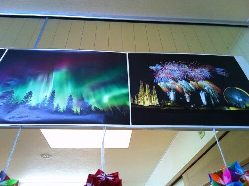 世界の花火の映像も掲示しています。オーロラの映像も観えます。
