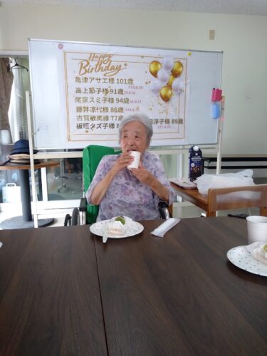 8月の誕生日会を行いました。今月は7名の入居者様が誕生日を迎えられています。