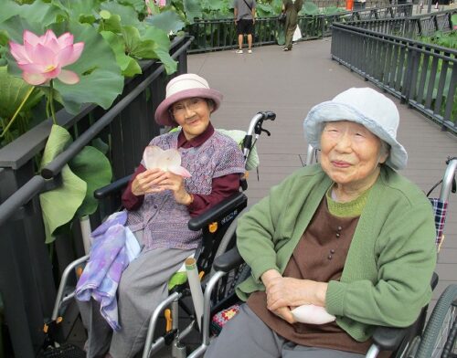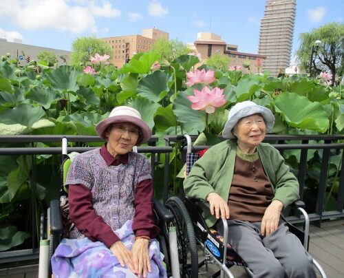 お天気も良く、ハスの花も見ごろを迎え、お連れしたご入居者様皆様に