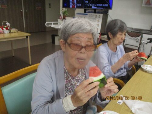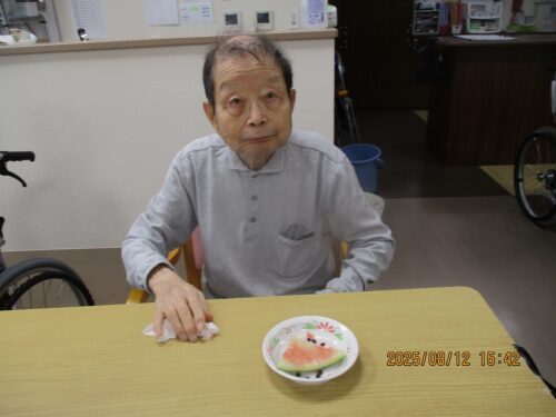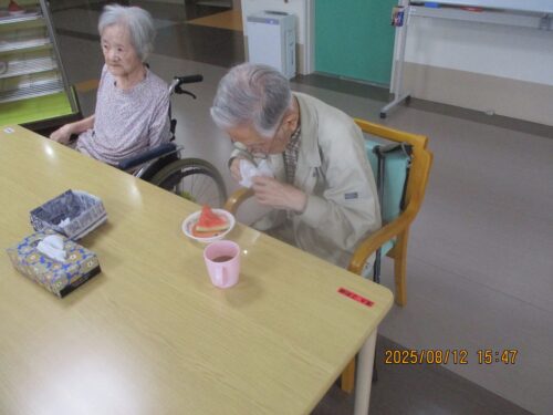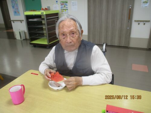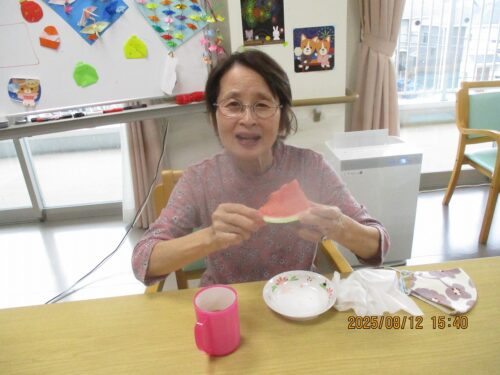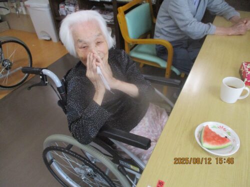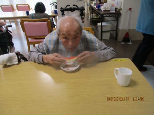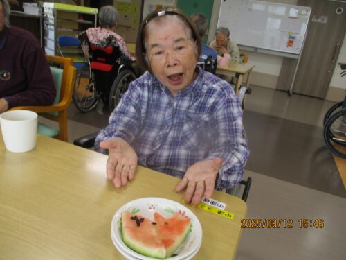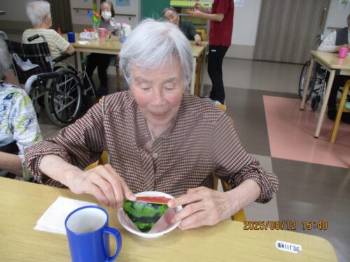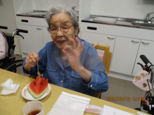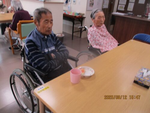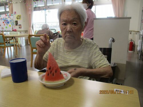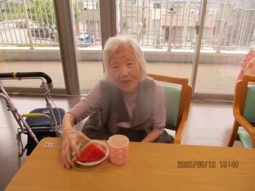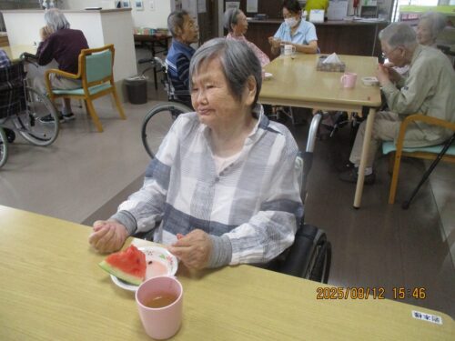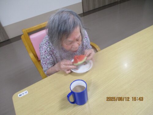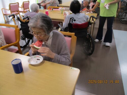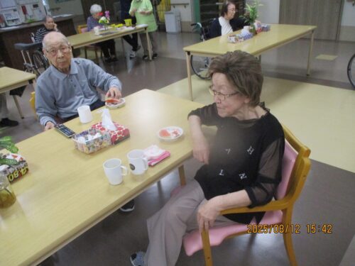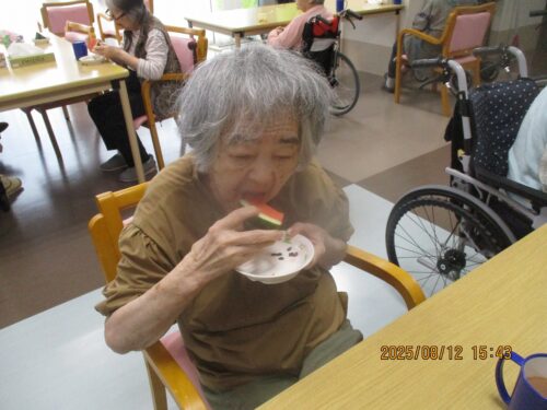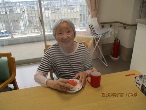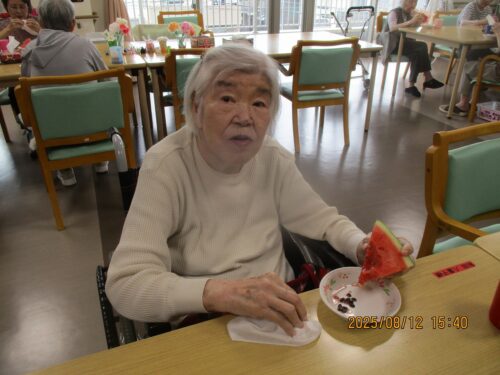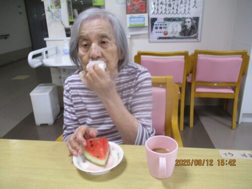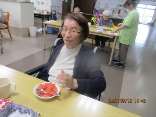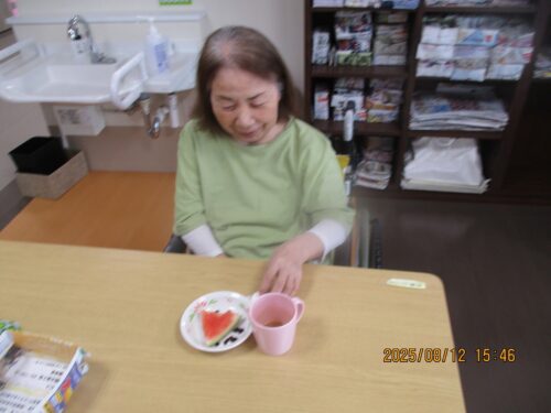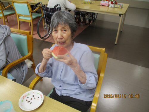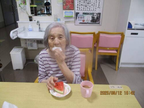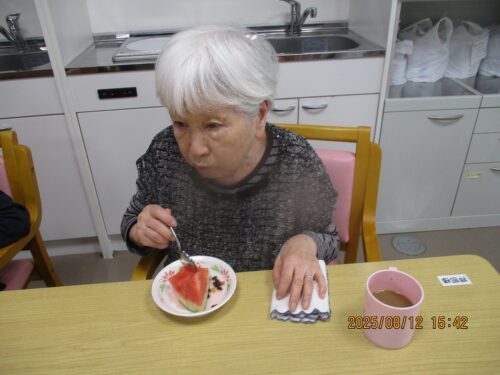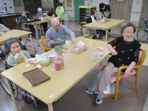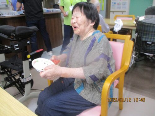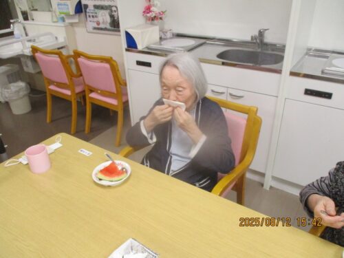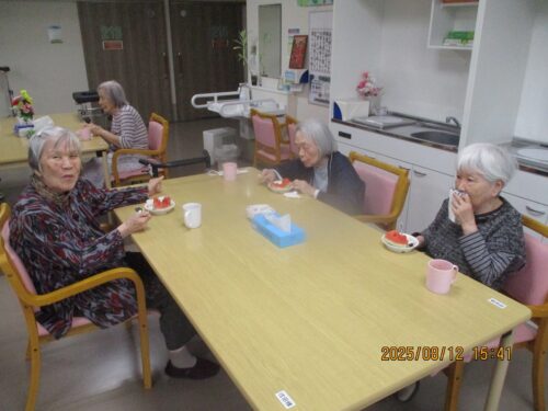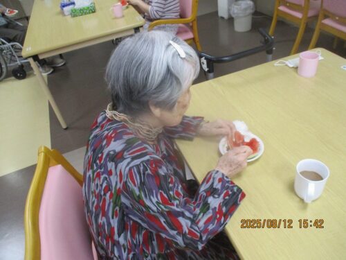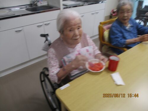 今回はスイカ割りの後のおやつの時間のご様子をご報告いたします。