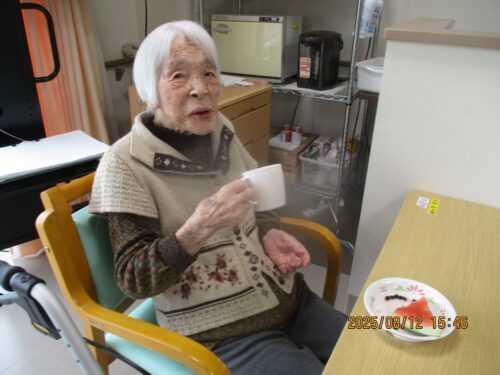 お隣のご入居者様が『汗と涙は入っていないけど水分はたくさん入っているね』と言われ、