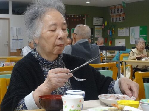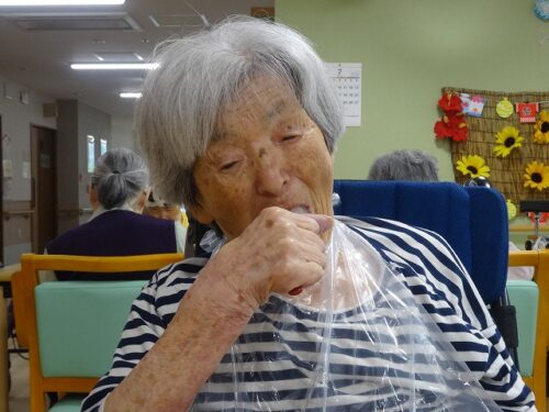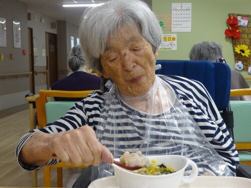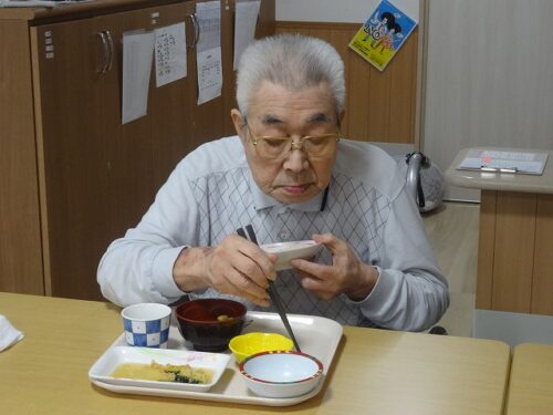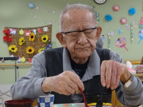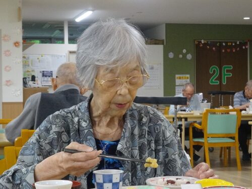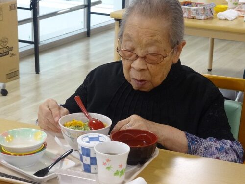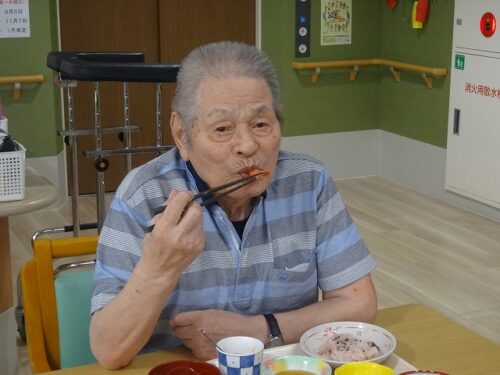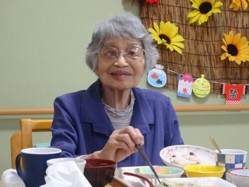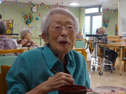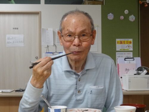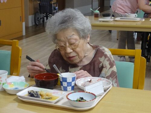 さわやか室蘭弐番館 2階 27日昼食(^^♪ 2024-07-28 2024-07-27 皆様こんにちは♪ 毎月第4土曜日の昼食は お誕生日会に合わせ行事食です お赤飯・清し汁・天ぷら茶碗蒸し わかめと枝豆の酢の物・フルーツです えび天を一口 来月も楽しみに☆ ご馳走様でした