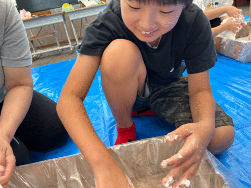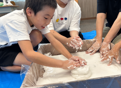 昨年も大人気だった、片栗粉粘土を今年も行ないました!!