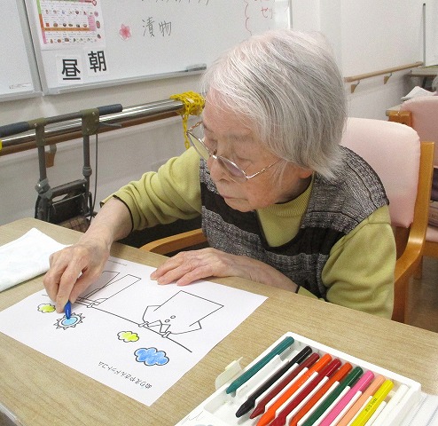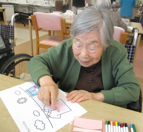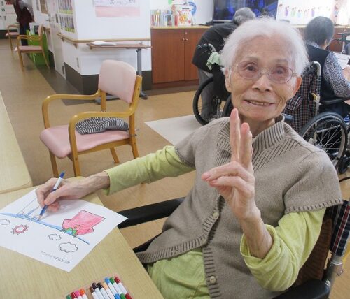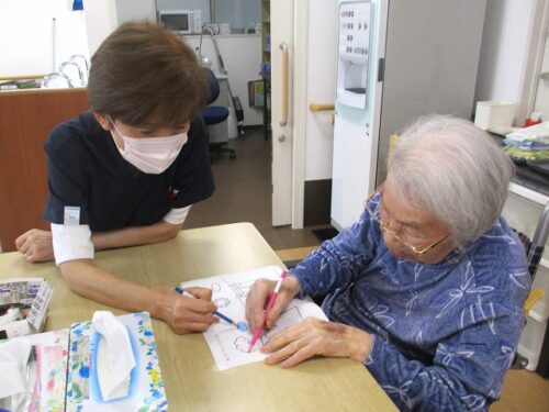さて今日は、先日行った「ぬりえレク」の様子をお伝えします!