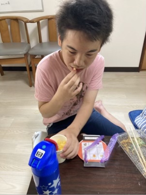 お昼ごはんは、やきそば、フライドポテト、枝豆、デザートでした😊