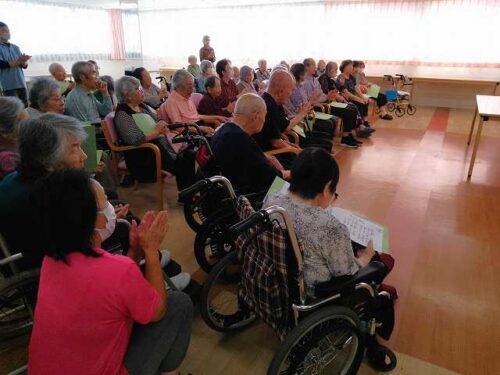 1Fや2Fのご入居者様も希望された方には誘導を行い、演奏会に参加して頂きました。