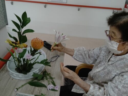 本日は中村さまが玄関のお花を替えてくださいましたので