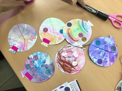 『はじき絵』と『にじみ絵』という技法を使っています。