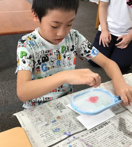 こちらは、『スパッタリング』という技法を使って、法被を作りました♩