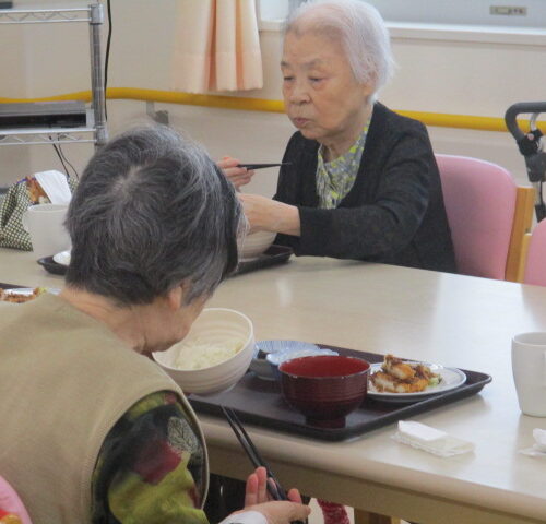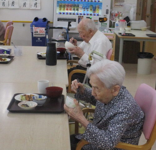 さわやか桜弐番館 昼食の様子【さわやか桜弐番館】 2024-07-27 2024-07-27 本日の秋田市は、どんより覆われた覆われた一日でした。今回は、入居者様の 本日は、入居者様の昼の様子をお知らせします。 本日のメインは、チキンカツでしたが、皆様「おいしい」とおしゃり 召し上がっておりました。 本日の担当は、高見 でした。