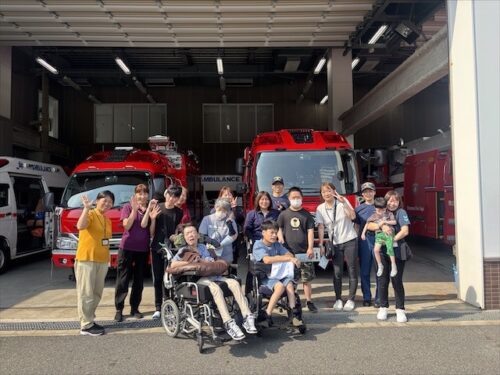研修後は、いつもの散歩道で毎回必ず立ち止まる救急車、消防車の見学をさせて頂きました。