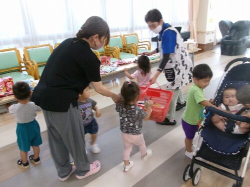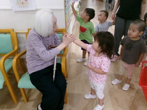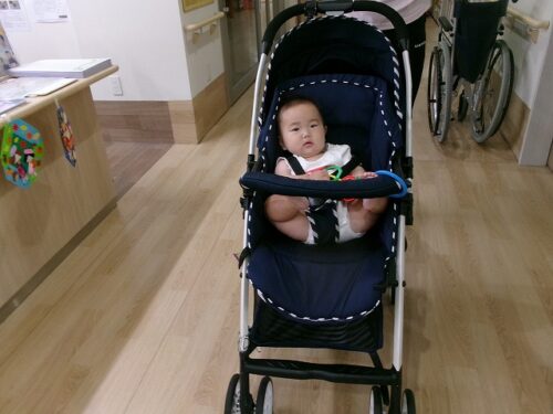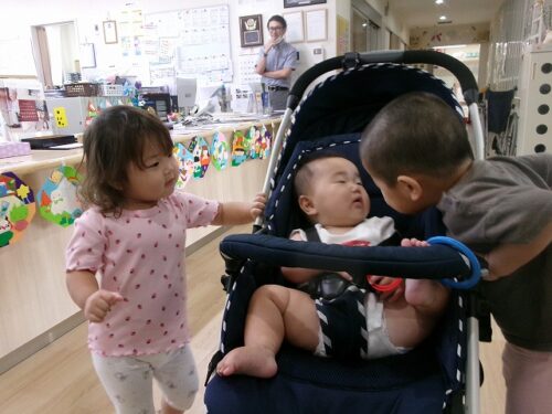 「怖くないからね~」(後ろから施設長が見守ってくれています✨)