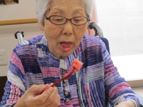 とても大きくて、甘いスイカだったようで、大好評でした。