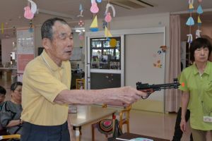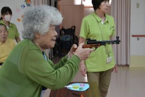 夏祭りで大いに盛り上がった射的をいたしました。