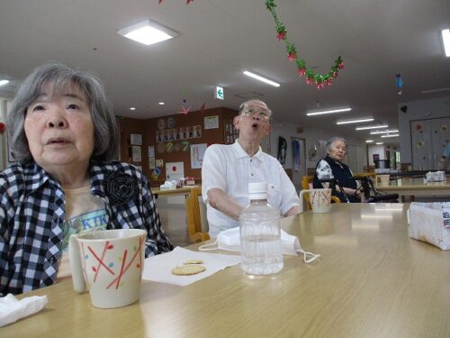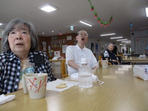 さわやか室蘭弐番館 3階 21日の様子♪ 2025-08-22 2025-08-22 皆様こんにちは♪ 昨日の様子をお届けします ベランダ菜園で収穫したトマトを 昼食時に提供させて頂きました おやつを食べながら カラオケを楽しみました🎤 ピースサインありがとうございます☆