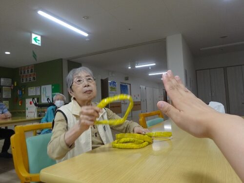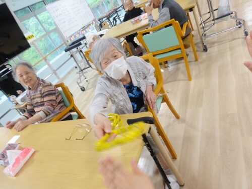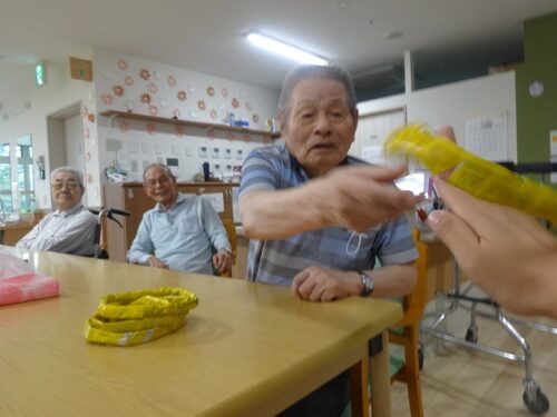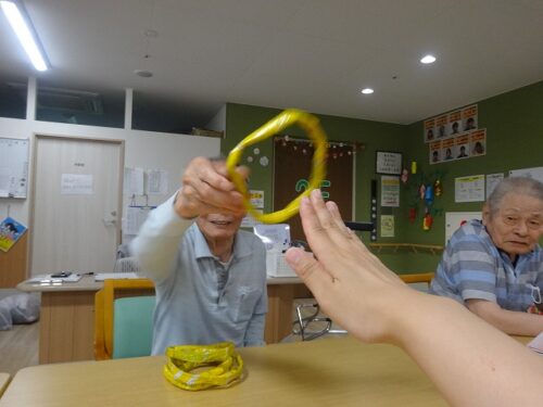 さわやか室蘭弐番館 2階 27日午後の様子♪ 2024-07-28 2024-07-27 皆様こんにちは♪ 昨日の様子をお届けします 2階はお誕生日の方がおられず💦 輪投げを楽しみました 職員の腕を目掛けて それー 拍手拍手