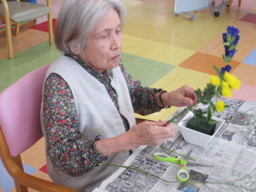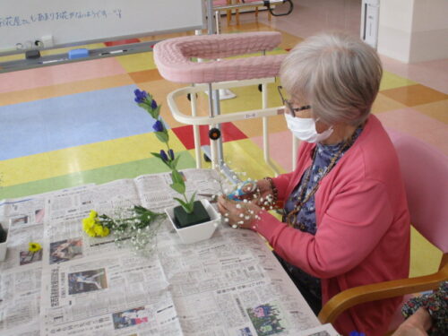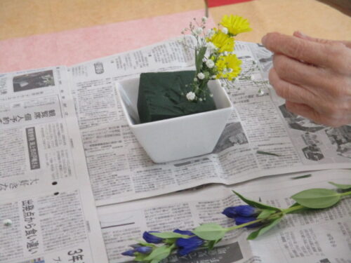 桜弐番館では先日、生け花レクがありましたのでそちらの様子をご紹介します♪