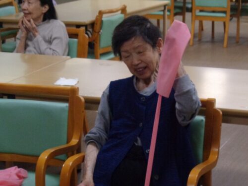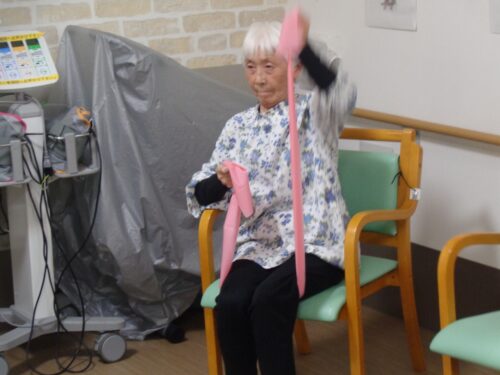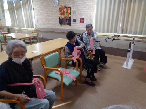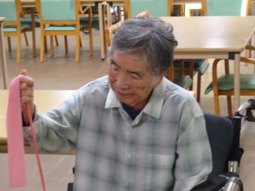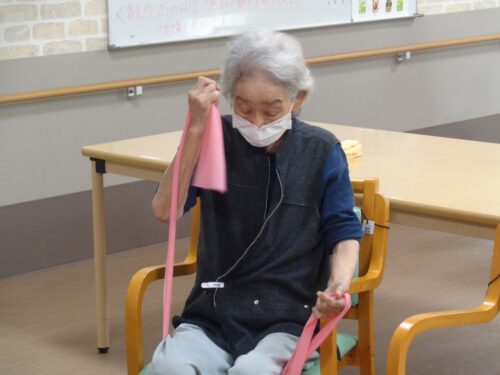 こちらは集団機能訓練です チューブを使った体操に🤾