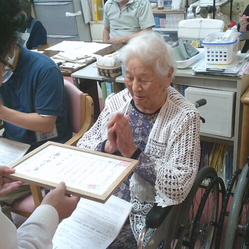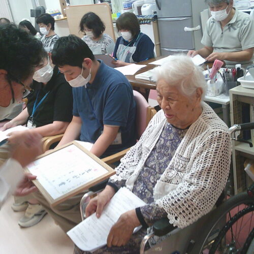 さわやか花美弐番館 さわやか花美館 8月度職員会議 2025-08-23 2025-08-23 今月の職員会議では、今年で御年99歳を迎えられました入居者様を表彰しました! Digital Camera Digital Camera Digital Camera これからも穏やかにご自身らしくお過ごしくださいね