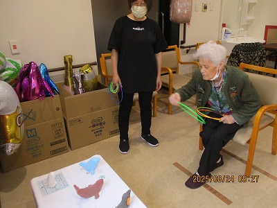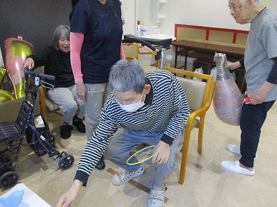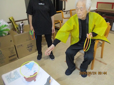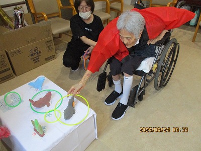 続いてのゲームは輪投げ🐬
