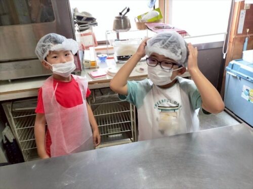 帽子とエプロンをつけたら準備完了です😄