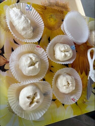 パン生地を丸めて、チーズ🧀やチョコ🍫を入れます