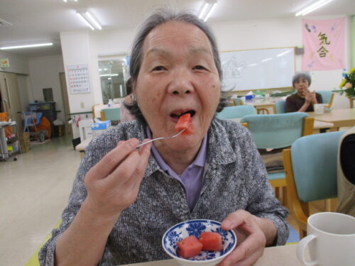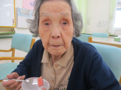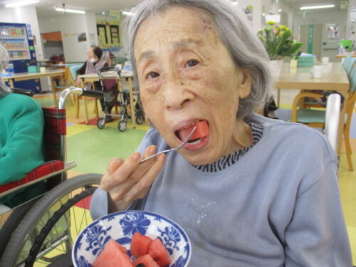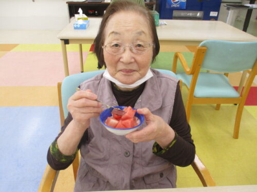 さわやか桜弐番館 おやつにスイカ!! 2024-07-28 2024-07-28 おはようございます。さわやか桜弐番館です!今日の秋田市は朝から雨が降っております☔ 昨日はおやつにスイカ🍉がでました!皆様大喜びです♪ 暑い日にスイカはピッタリですね! 美味しいものを食べて夏を乗り切りましょう♪ 担当:長谷部🌻
