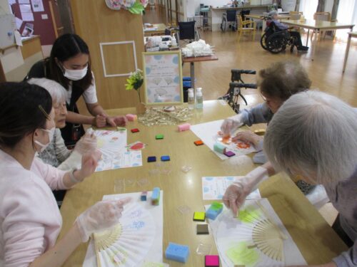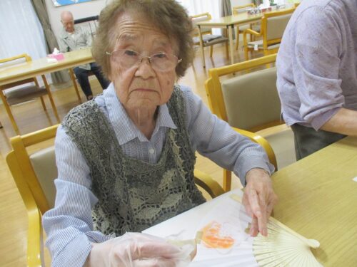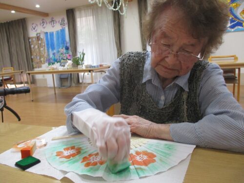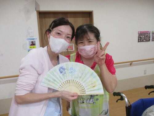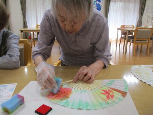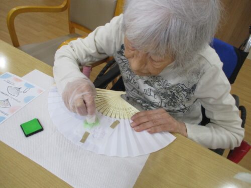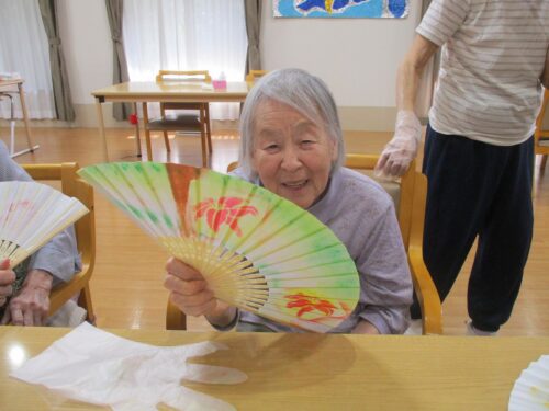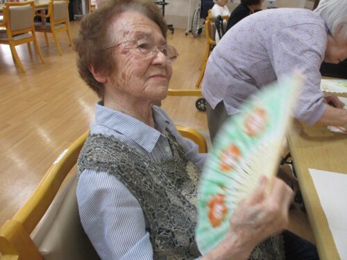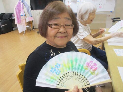 さあ!完成しました 無地の扇子が可愛くなりました。(⌒∇⌒)