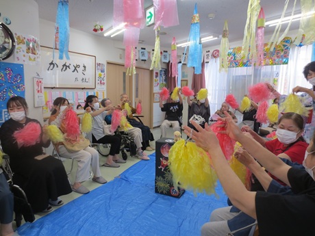グループホームかがやき ♪ 夏祭り パート1 2F♪ 2025-08-05 2025-08-26 夏祭りを開催しました🎇 まずは、ボンボン揚げです🎇 次は、魚釣りです🎇 ジャンケンゲームも行いました🎇 美味しい食事も頂きました🎇 次は、スイカ割りと花火大会をお知らせします🎇 ☆彡 う す い_(._.)_