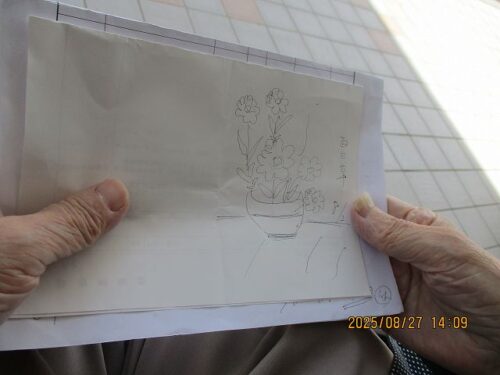 上手ですねぇ(⌒∇⌒) お花を見て、スケッチしていました。