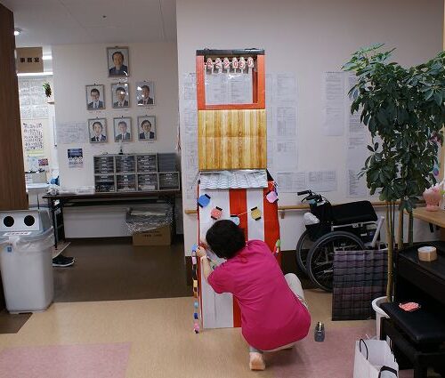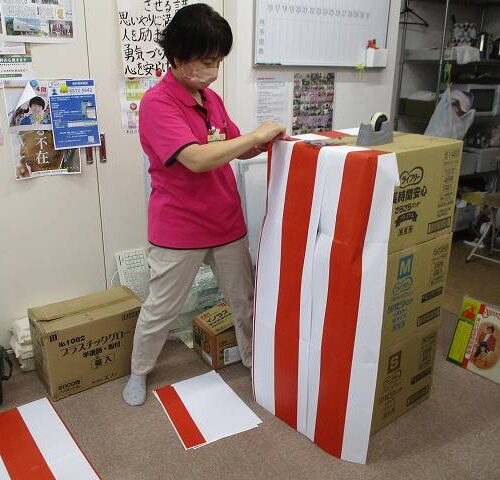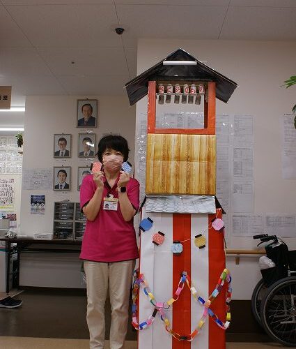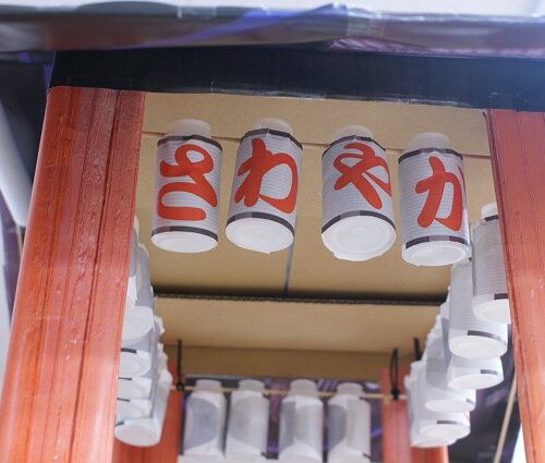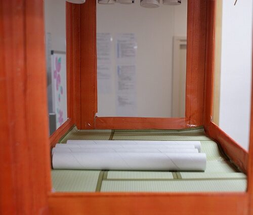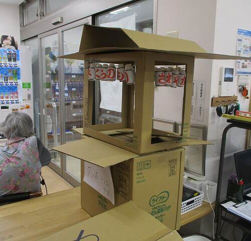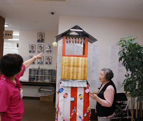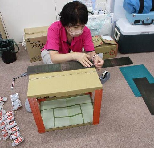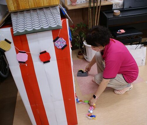 夏祭りも近づき盆踊りの「やぐら」を作成中