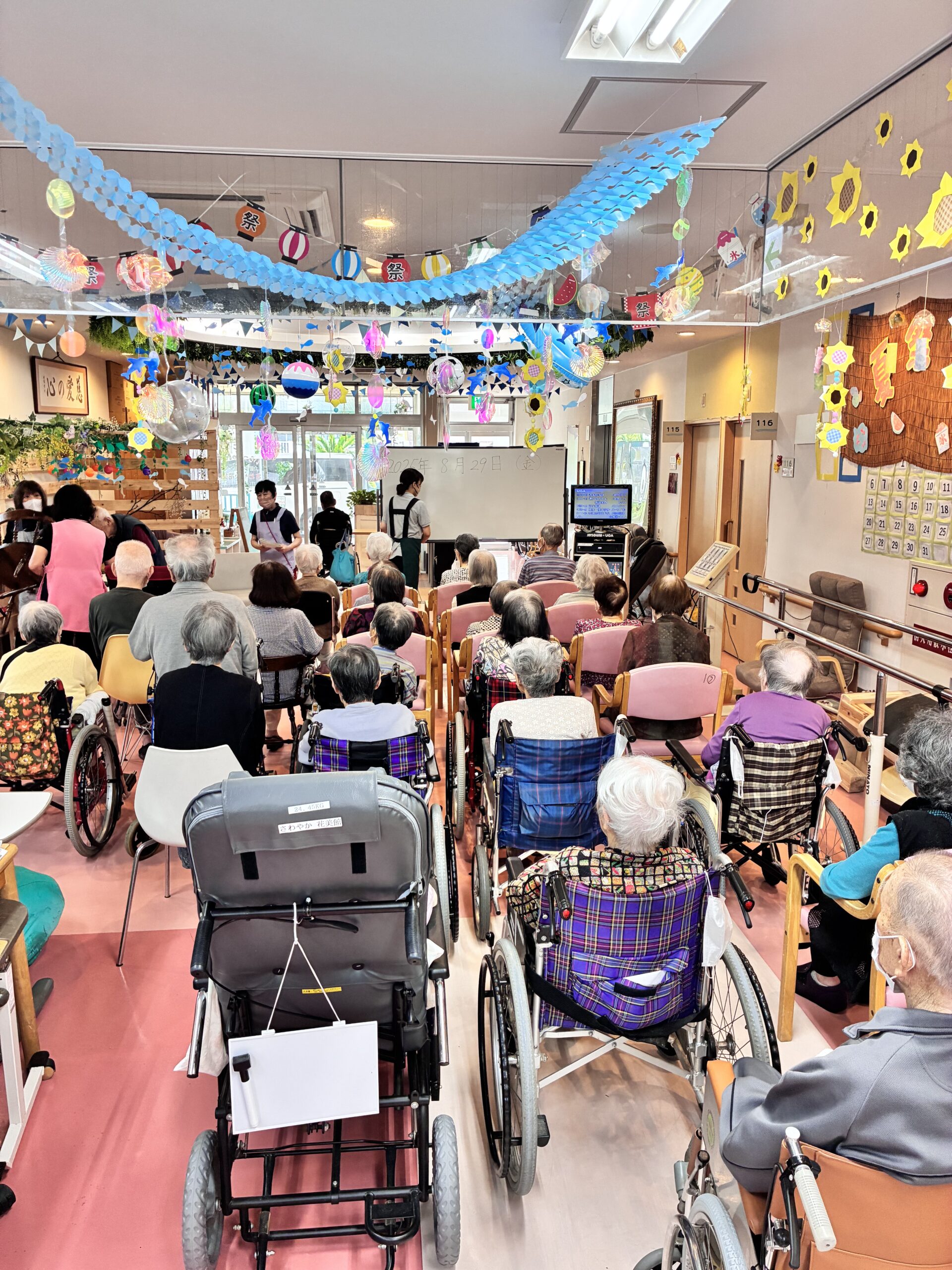 さわやか花美弐番館 さわやか花美館 ☀️今日も朝から活力を💪💪✨ 2025-08-29 2025-08-29 朝の活力朝礼です 本日もたくさんの入居者様が集まって ラジオ体操で体を動かし 歌を歌って気分を上げています! このあとで飲み込む体力をつける口や舌の運動を行っています さぁ今日も元気で安全に過ごしましょう!