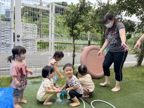 くきのうみ保育園のプールはまだまだ続きそうです😘🩵