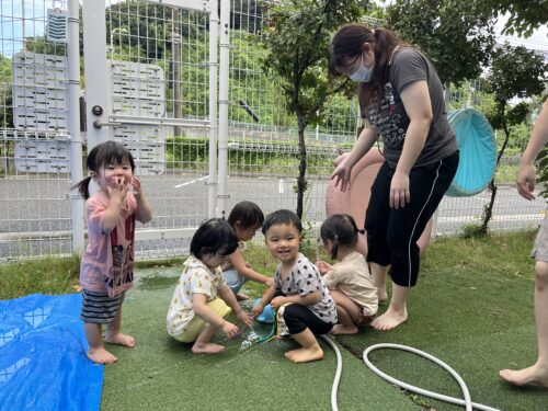 ホースを握ってお友達や先生にむけているお友達も😙笑