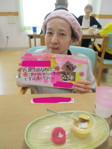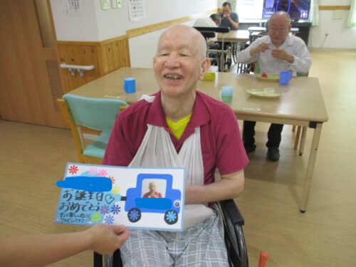 さわやかおおみや館 ~誕生日会~ 2025-08-28 2025-08-31 8月の誕生日会を行いました🍰 8月誕生日のご入居者様は4名いらっしゃいまして 色紙を渡すと笑顔で受け取って下さりとても嬉しかったです😊 これからも元気に楽しく過ごしましょうね!