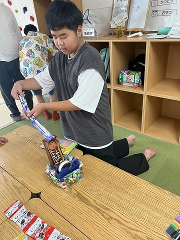 そしてカバンとなるようにお菓子をテープで張り付けていきます✨