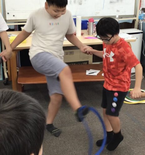 何度も何度も挑戦し、ついにフープを全員でつなぐことができました!
