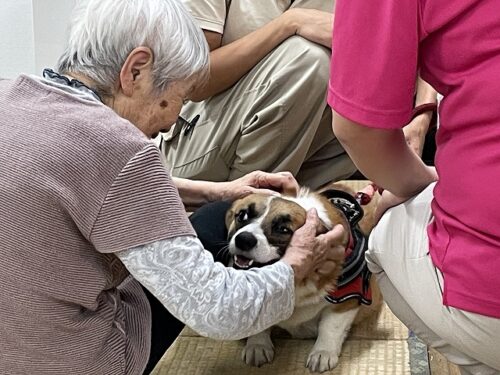 さわやかグループホーム はなみずき ワンちゃんが来ました!🐶✨さわやかGHはなみずき 2025-09-01 2025-09-01 こんにちは!GHはなみずきです😆 本日もワンちゃんがいらっしゃいました!とってもかわいいコーギーさんに、 皆さま大夢中😆✨ かわいいね!と素敵な笑顔🥰 職員まで一緒に癒されたひと時でした🎵