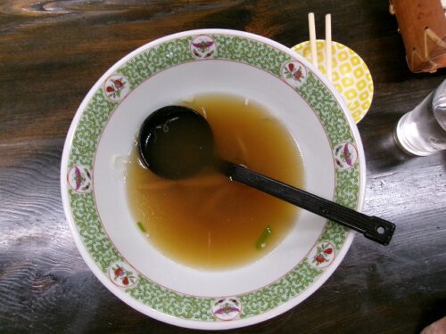 店主の愛情こもったラーメンが到着してさっそく食べます!