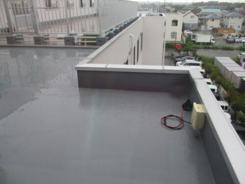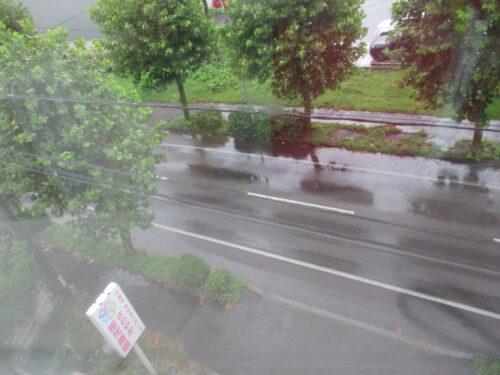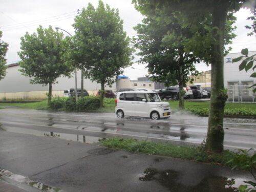 桜弐番館前の道路にも水がたまり、車が通る度に水しぶきをあげています😓