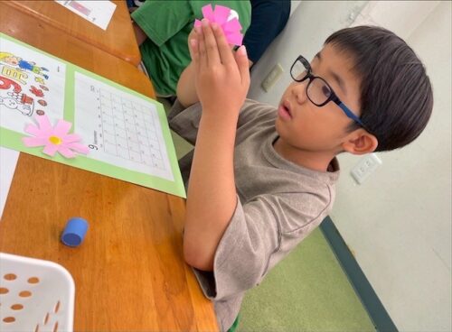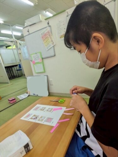 花びらの形になるようにのりで貼っていきます🌸