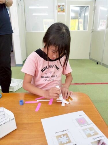折り紙を折って、ハサミで切ります✂️