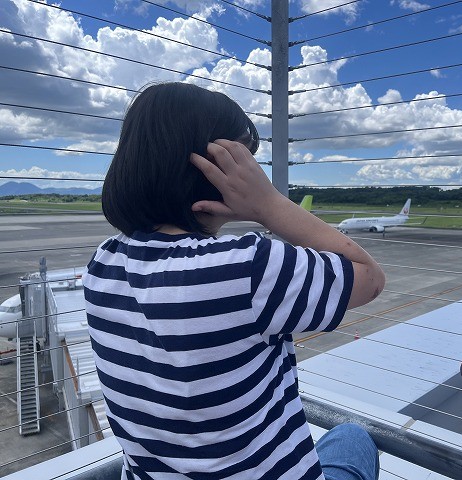 飛行機が下りてくる様子と飛び上がっていく様子を観察しました✈