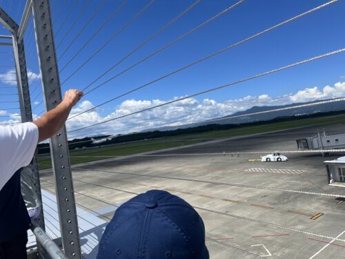 展望台に登って飛行機が目の前に現れると皆さん大興奮です✈